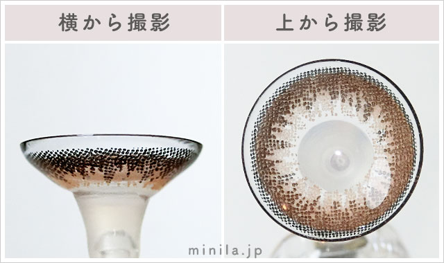 裏側から見ると3トーンが分かりやすいですが表だと2トーンのように見えます。裏表の違いが分かりやすいので初心者さんでも安心です。レンズの厚みは薄めでやわらかいので水分をよく払ってからお椀型にしてくださいね。