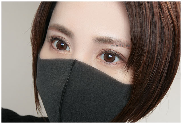 大きめのカラコンは白目が透けちゃう可能性も高くなりますが、やや白っぽさのあるマットな着色のおかげか、白目の透けは気になりませんでした。マットと書きましたが瞳自体はツヤがあり、ちゅるんとしています。細フチとアッシュブラウンの組み合わせで色素薄い系にも見えますね♡