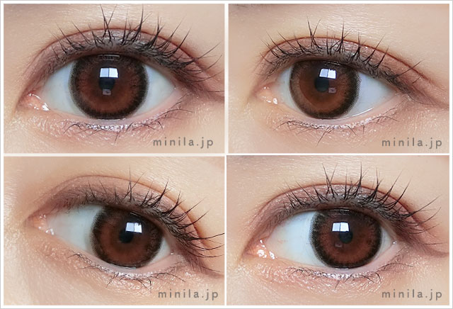 通販サイトの着画では内側のカラーがかなり発色していますね。こう見るとちょっと派手な感じにも見えます。ミニラではカラコンとの境目が分からないくらい馴染んでいます。元の目の色によって差が出るレンズなのかも?