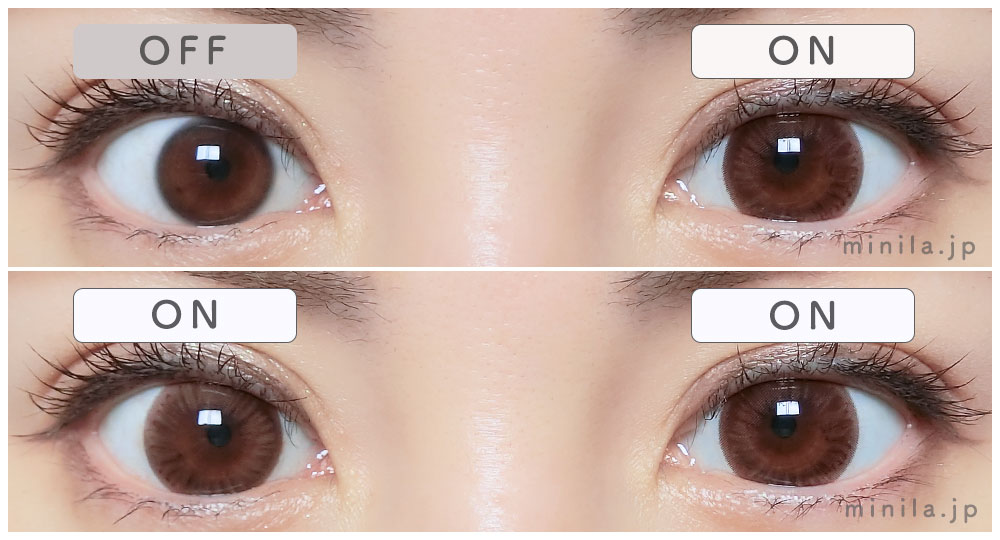 元が茶目のミニラでは《ウォームブラウン》に発色しました。ほんのり赤みブラウン寄りだけど赤みは強すぎず、あたたかみのあるブラウン♪瞳孔付近は超自然に馴染み、くり抜き感は全くありません。