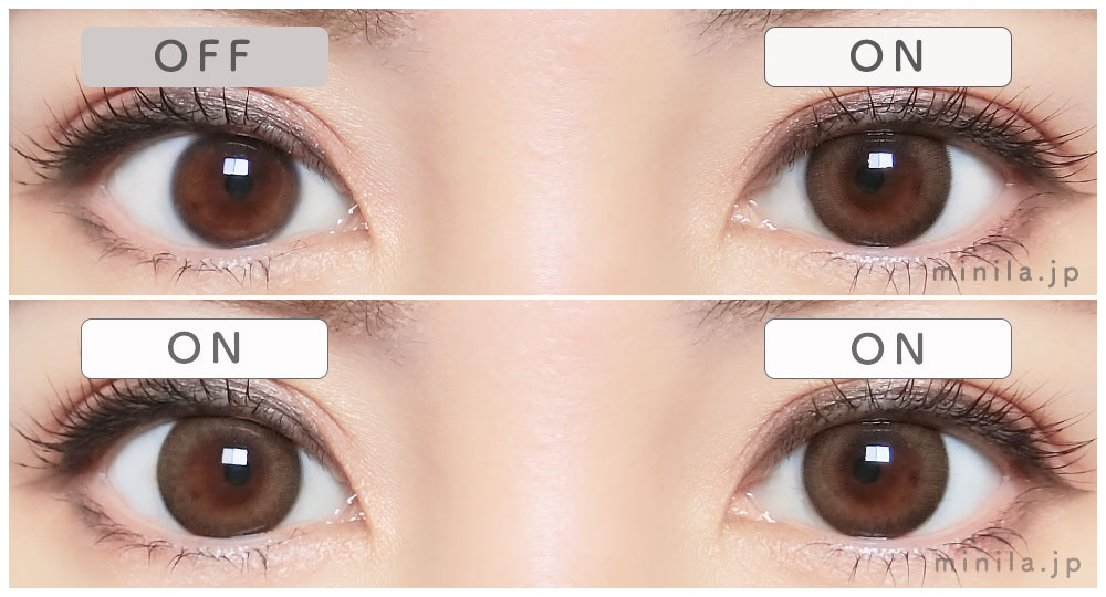 いつもならここで公式着画と比較をしていますが、実は今回商品ページでの着画モデルをさせていただきました・・・!なので「ミスティークブラウン」はミニラの目とミニラの目の比較になってしまうので割愛させていただきます。よろしければ商品ページもチェックしてみてください!