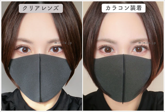 裸眼時と比べてみるとかなり自然なサイズアップ。着色直径14.0mmで宇宙人に見えるのか不安でしたが大丈夫でした!逆に大きさ重視の方には小さく物足りなく感じる可能性があります。ミニラ的にはとても好きです♪