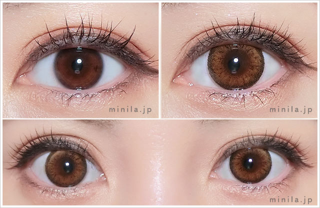 裸眼と比べると全然違いますね!離れてもフチの存在感もあってくりっと見えます。奇抜すぎないハーフ感を楽しみたい方におすすめ。カラコン感があるので基本的には休日使用がおすすめです。