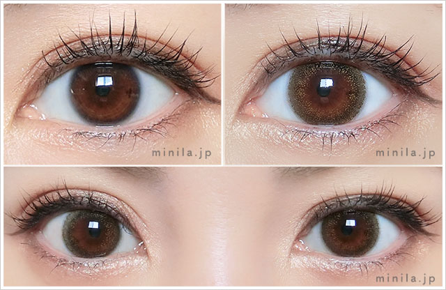 《茶フチ+ベージュ系ライトブラウン》で垢抜け&こなれ感抜群!シリーズの中では2番目に明るいかな。色素薄い系~ナチュラルハーフのような瞳になれます。《体感13.5mm~13.6mm》細フチがちゅるんとしていて、ベージュ系なのに怖くなく、くり抜き感もありません。